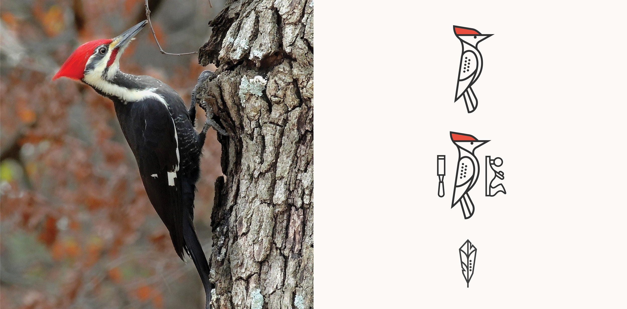 Taking inspiration from an old woodpecker mural on the gallery we wanted to bring it back and make the old new. A woodpecker is elegant, strong and a perfect mascot for a woodworking co. We took that idea and ran with it combining old wood working tools and the woodpecker in a strong yet clean and simple style that has a playful and vintage touch. We wanted parts of this brand to feel like something you would find on an old Stanley tool.