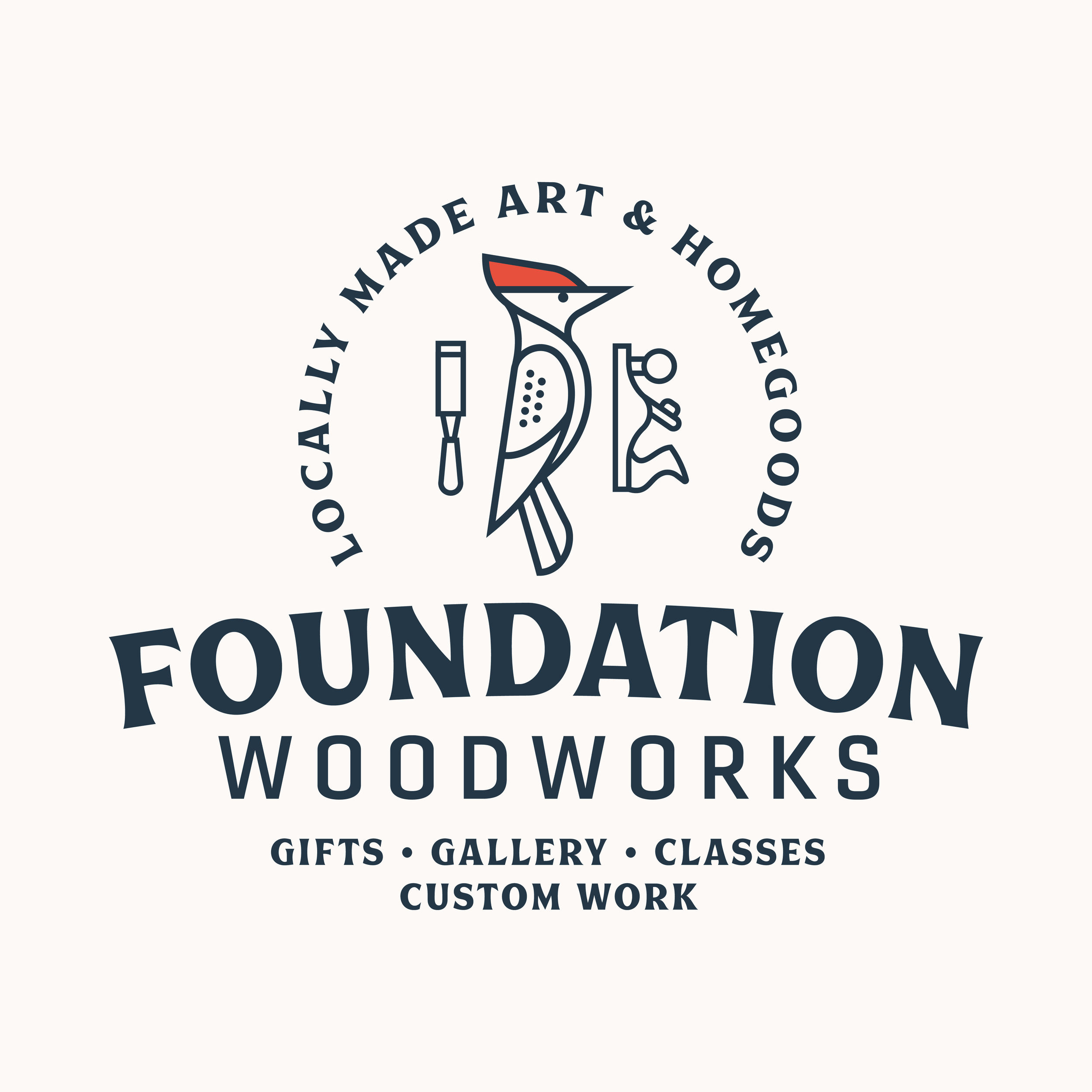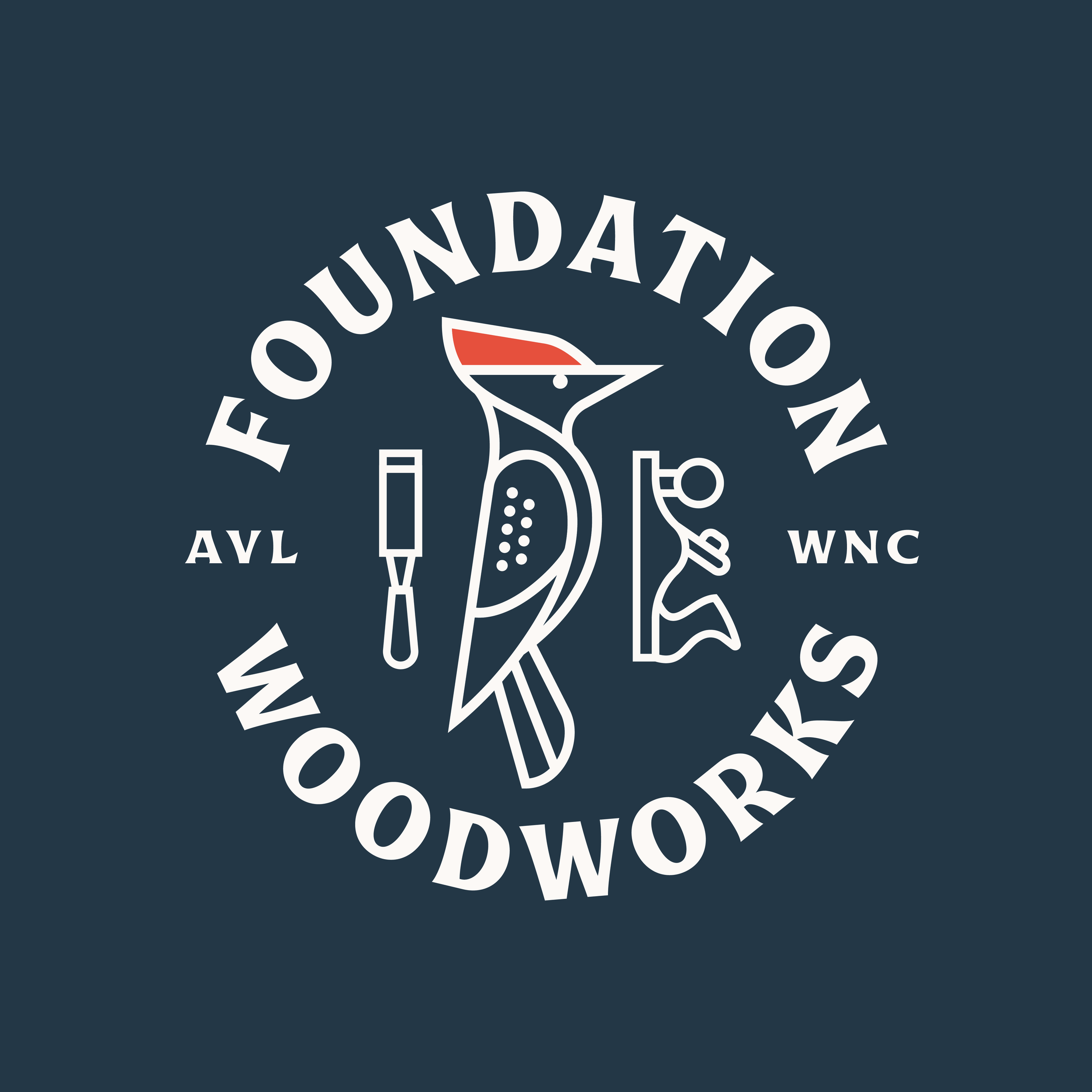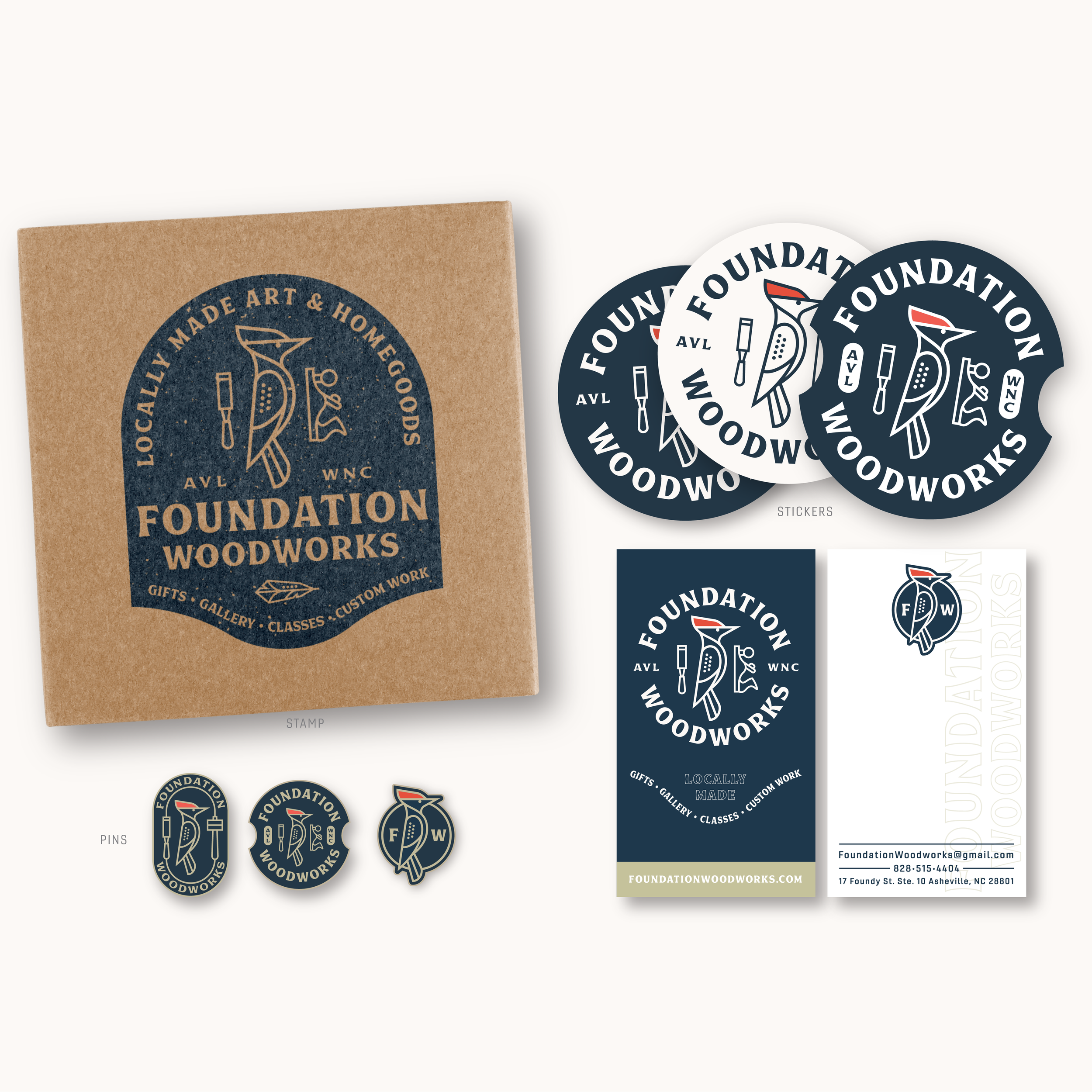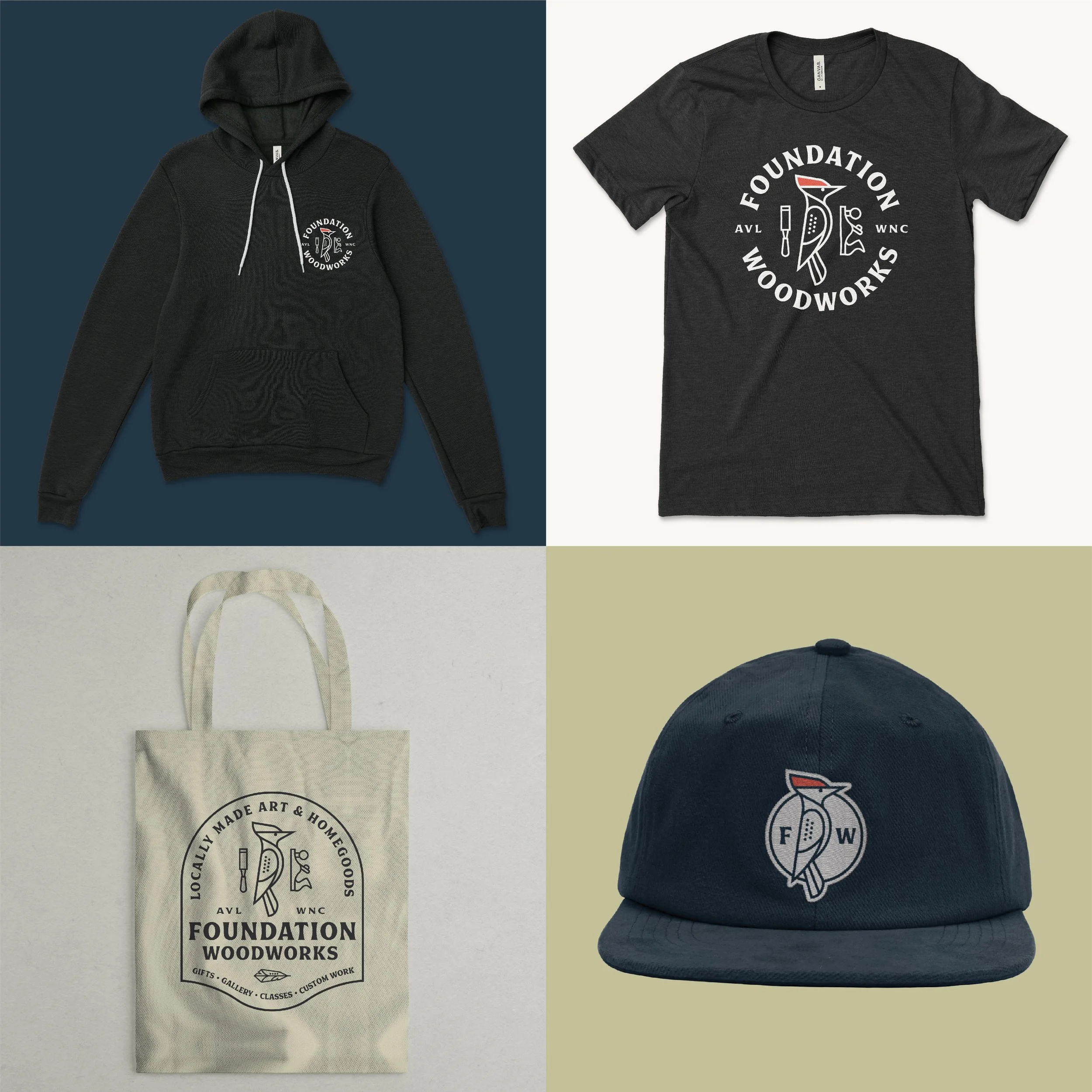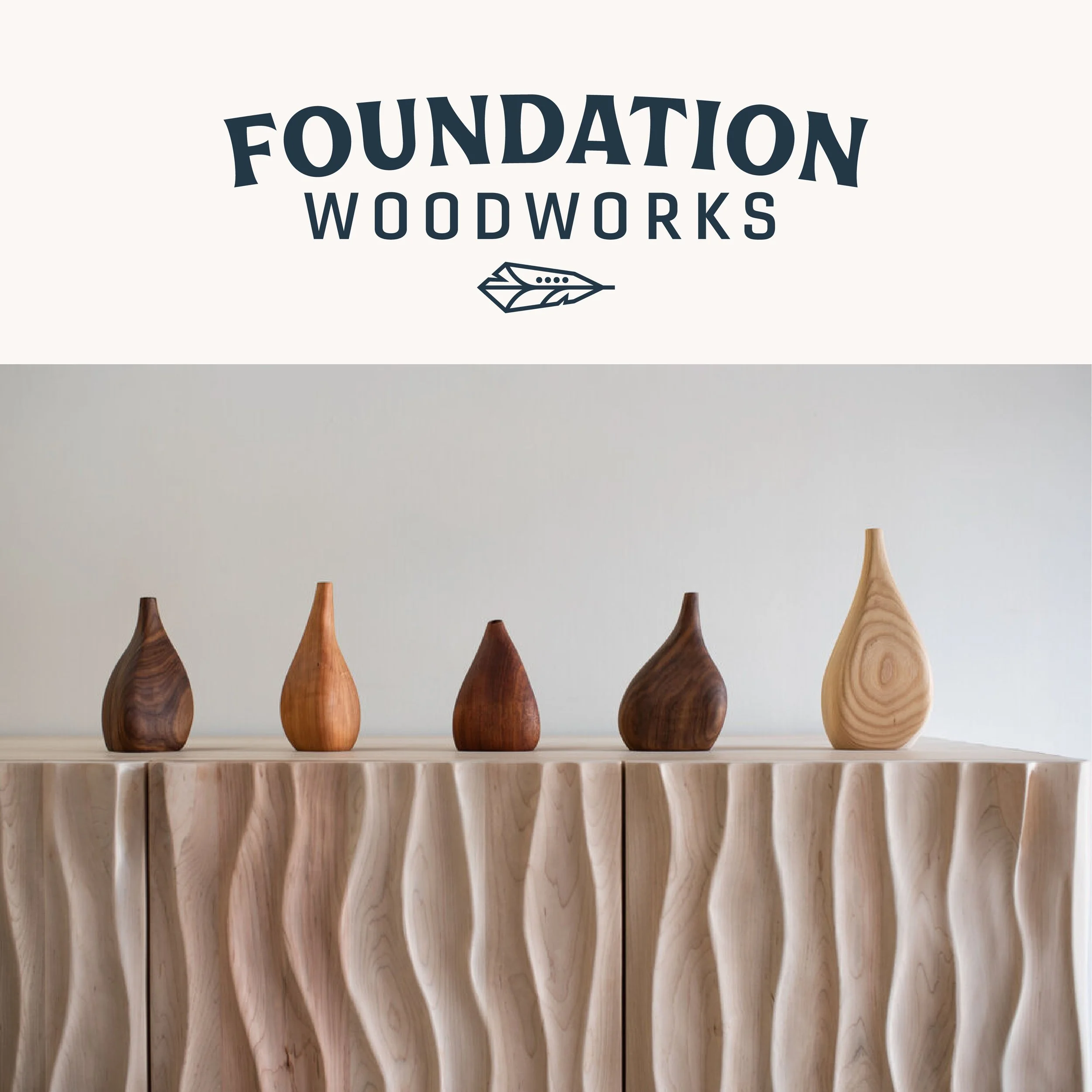 I had the pleasure of working with Mark and Jacqueline from Foundation Woodworks on their new branding. They had recently purchased Foundation Woodworks a gallery and community woodshop in the historic River Arts District of Asheville, North Carolina, dedicated to highlighting and advancing the art of woodworkers and craftspeople in that mountain region. They showcases a wide array of fine woodworking from more than 65 local artists. Turned bowls, wall sculptures, homegoods, jewelry, lighting, woodcut prints, kitchenware, cutting boards, and a varied selection of heirloom-quality furniture are all featured there. They also provide a community woodshop to 20 local woodworkers who rent out studio / work space.